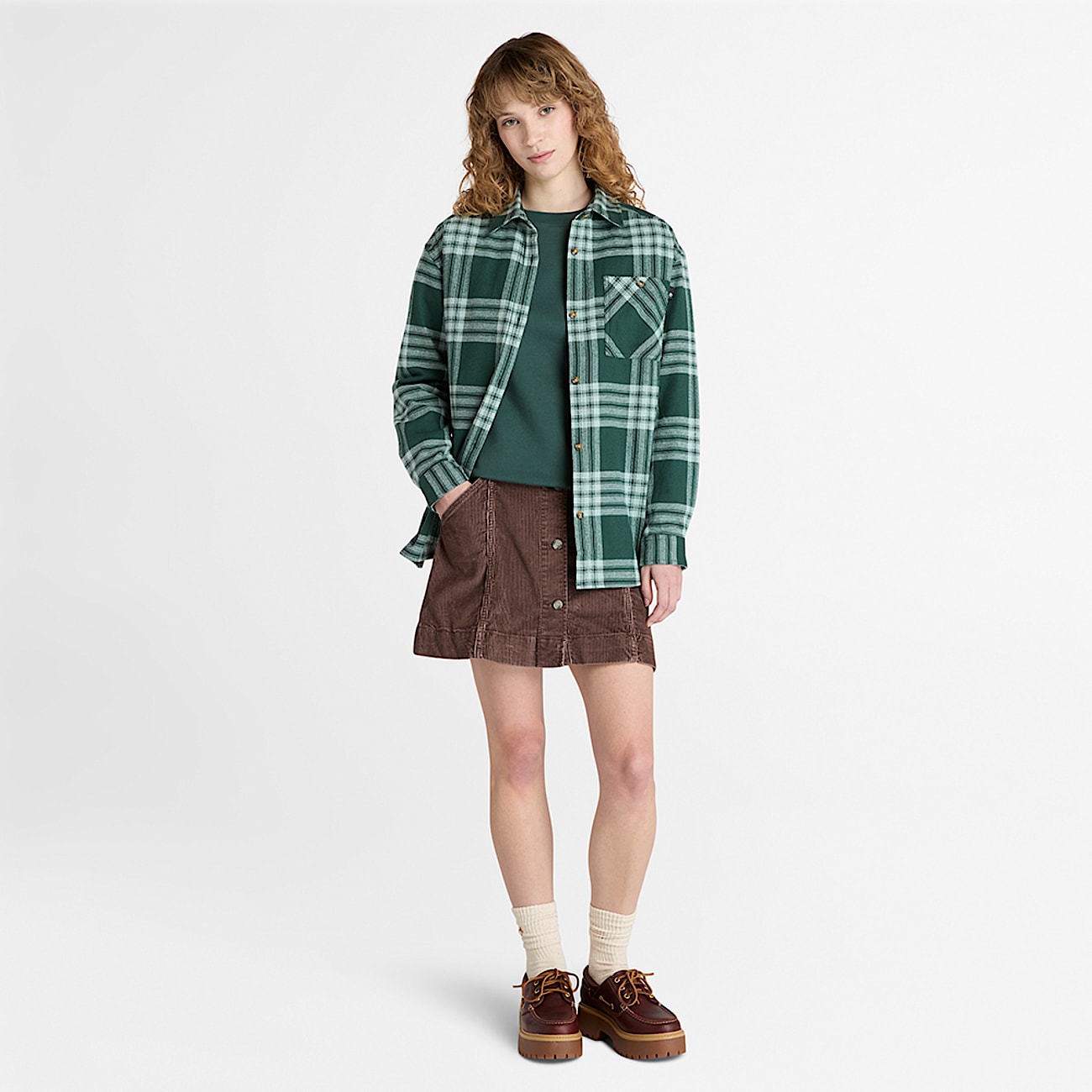 Our women's washed corduroy skirt helps combine style and comfort with its soft, garment-washed fabric of 98% cotton with 2% elastane for a touch of stretch and practical details like side and back pockets.